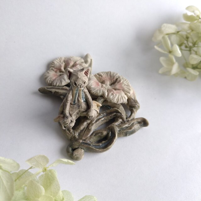 好きな花や、その花言葉をイメージしたりしながら、自分の身体が小さくなったら、こんな風に花の妖精のように寄り添ってみたいなぁと思いながら制作してみました。