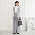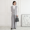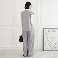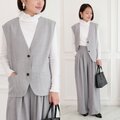 【着回し効くセットアップ】美シルエット✨ サラサラ素材 ジレとプリーツワイドパンツ セット グレー