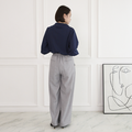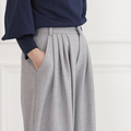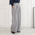 プリーツタック ワイドパンツ 後ろウエストゴム 【4サイズ】 グレー 0635Grey
