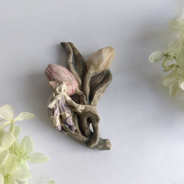 好きな花や、その花言葉をイメージしたりしながら、自分の身体が小さくなったら、こんな風に花の妖精のように寄り添ってみたいなぁと思いながら制作してみました。