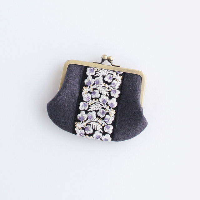 インド刺繍リボンをあしらった小回りの利くサイズのがま口ポーチ