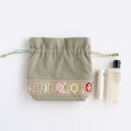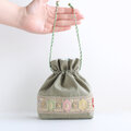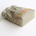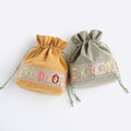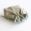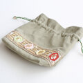 インド刺繍リボンをあしらったマチのある巾着ポーチ