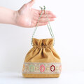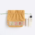 インド刺繍リボンをあしらったマチのある巾着ポーチ