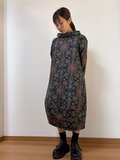 紬の着物を裾が丸くすぼまったバルーンシルエットのワンピースに仕立てました。