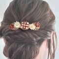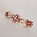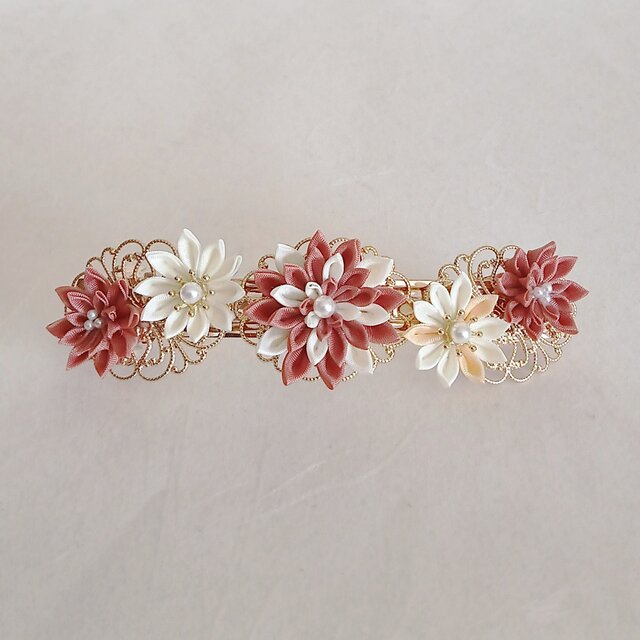 一枚一枚、折り重ねた「つまみ細工」の花々を、贅沢に5つ並べたバレッタです。