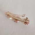 つまみ細工 お花のバレッタ 大 サーモンピンク 透かしゴールド