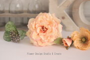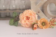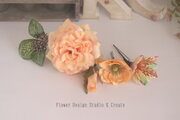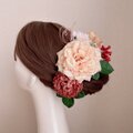ピーチピンクの薔薇とテラコッタのマムのヘッドドレス 桜 アネモネ 紫陽花 髪飾り 成人式 卒業袴 結婚式 ウェディング