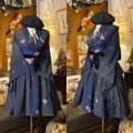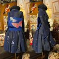 【 着物 ミニ丈 ワンピース ドレス 和ロリ 2部式作り帯 名古屋帯 お太鼓 リメイク 和洋折衷 洗える 化繊 ハンドメイド レトロ 古着 単衣 紫紺の誘惑 × 幾何学モダニズム MKW-68 】