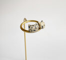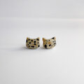 ぷっくりベージュ、黒斑模様 猫 天然石ダルメシアンジャスパー ピアス