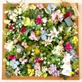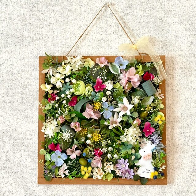 花材はアーティフィシャルフラワーで、ラビットは木製です。