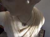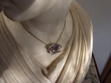 黒い革ひもに通すと、モダンなネックレスになり、素敵です。