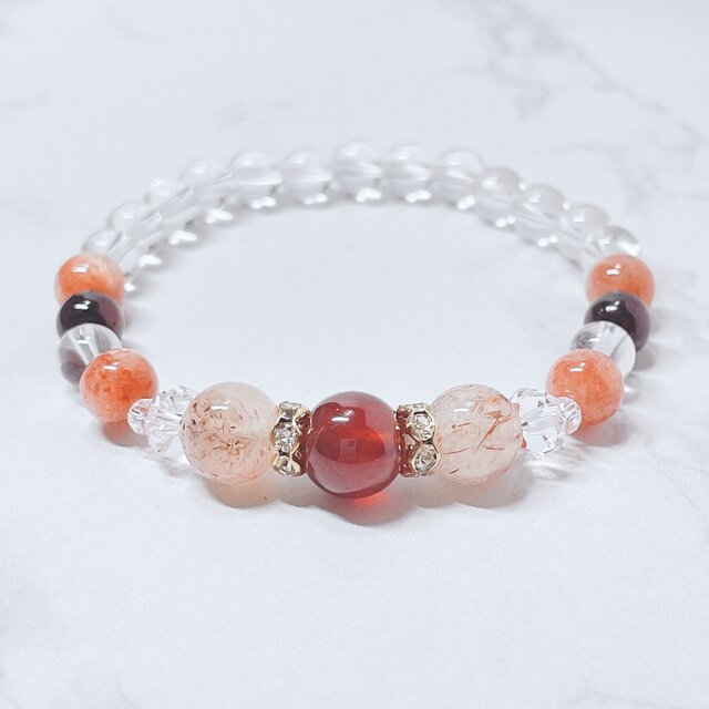 ✦数量限定✦揺るがない軸を育てる 天然石ブレスレット| オレンジガーネット・スーパーセブン マイカストーン No.844
