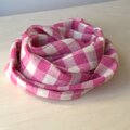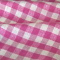 コチニールで染めたピンクと白で大きめのギンガムチェックに織りました。