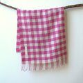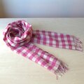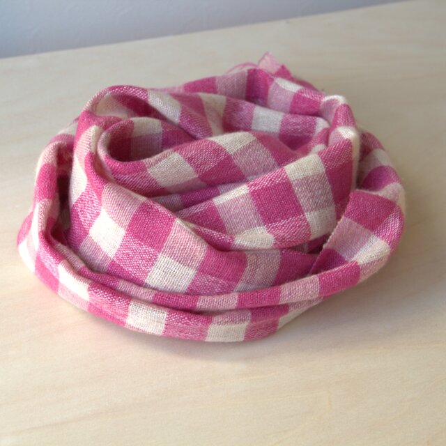 ホームスパン リネン×カシミヤマフラー ピンク大きめギンガムチェック