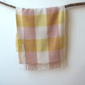 白とアイボリーをベースに薄い茜色と黄色で大きなチェックに織りました。