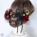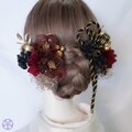成人式 髪飾り 深紅の椿×黒金紐アレンジ|卒業式 袴 和装ヘア No.BR90 振袖 着物 花嫁 結婚式 ヘアアクセサリー