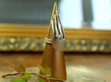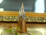 手の形をした不思議なリング、長く伸びる指がとても個性的です。