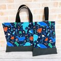 レッスンバッグ&シューズケース 2点セット 【和柄・水族館★紺】