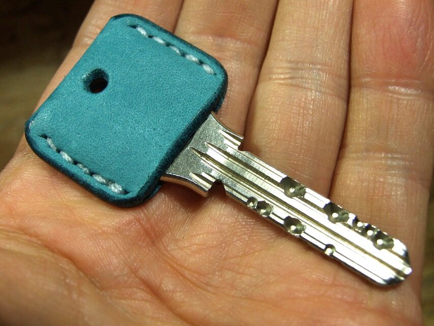 プエブロレザー(マヤ)のターコイズブルーで作ったキーカバーです。