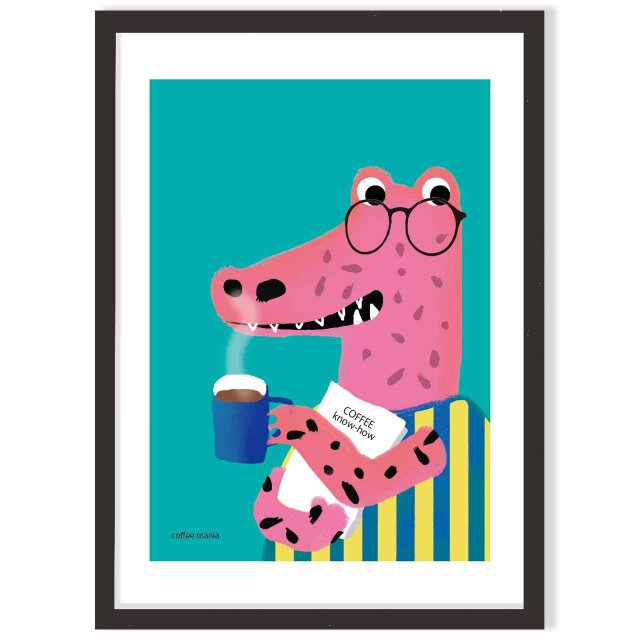 コーヒー大好き ワニさん 実は飲みにくい口で苦労しますポスター。