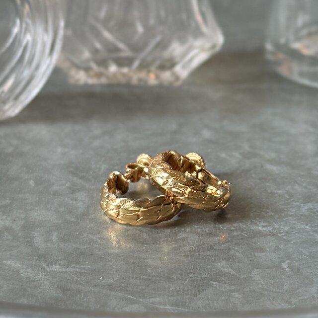 深いゴールドトーンと程よい小ぶりなサイズで、品よくまとまっています。