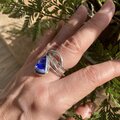 ガラスの鉱石のリング/950silve・槌目・紺ガラス#12