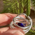 何重にも巻いた銀のリングに紺瑠璃のガラスを飾りました。(1/25) 磨りガラスのお豆がついたシルバーリングをアップしました。