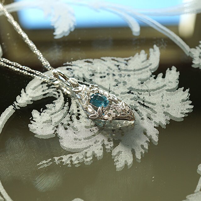 カイヤナイトとモアッサナイトを使用し、シルバーでペンダントを製作いたしました。
