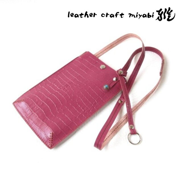 〇オールピンクの型押しクロコにターコイズカラーのコンチョでアクセント♪