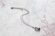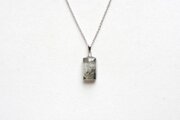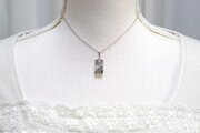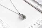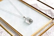 二種類のグレーと、ほのかに散らされたラメのきらめきが清廉な印象を与えるペンダント。