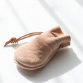 要となる縫製には丈夫な専用糸を選んでいますが、それ以外の本体、紐、そして留め具のビーズ、手に触れるすべてのパーツに本革を使用しています。