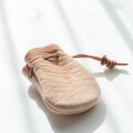 そのため、留め具のビーズに異素材ではなく革を用いることで摩擦を抑え、大切な革紐への負担を減らす工夫をしました。