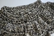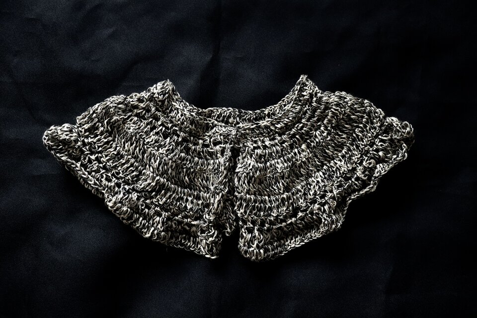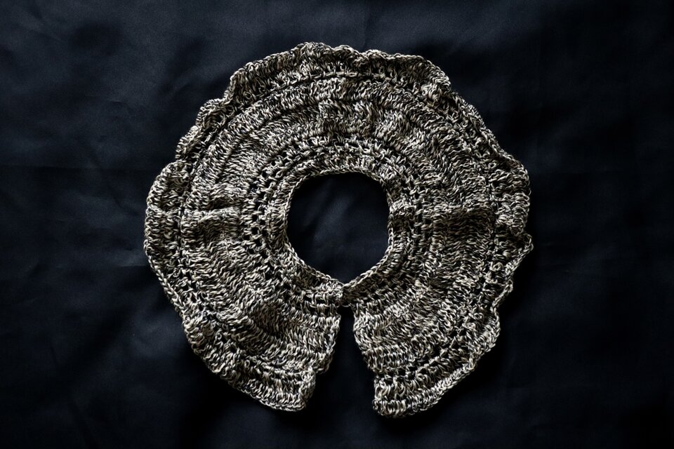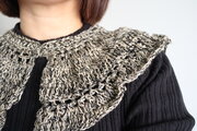 毛糸、ふわふわ、黒、モノトーン、かわいい、やわらかい、ティペット、付け襟、つけ襟、付け衿、スカーフ、首、プレゼント、ギフトラッピング、大人用、ニット、大ぶり、個性的、ロマンティック、羽根、花びら