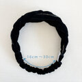 ブラック色のドイツ製コットンベロアで作ったヘアバンドです。ピンク、ブルー、ゴールド色のラメのパイピングが所々に見えます。前後の向きを変えることで違った見え方をお楽しみ頂けます。
