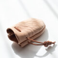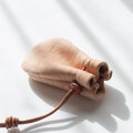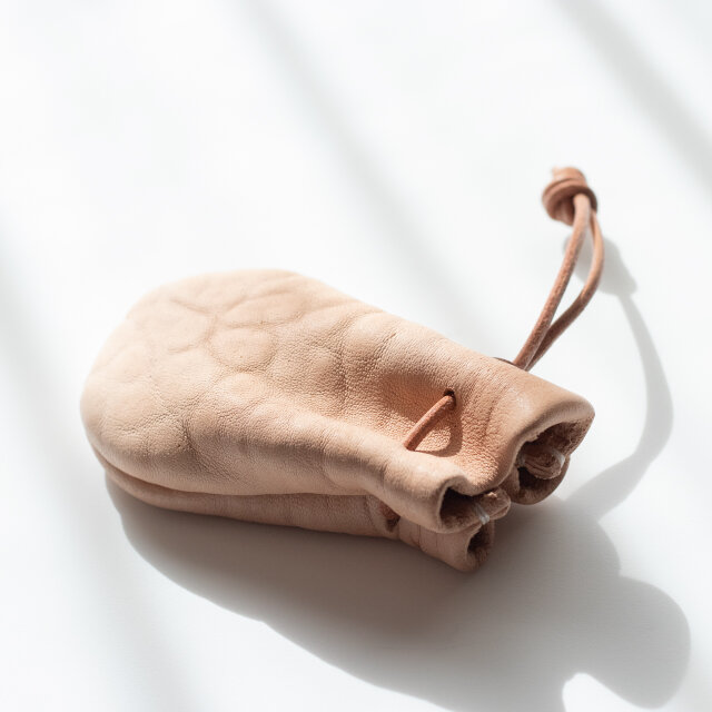 要となる縫製には丈夫な専用糸を選んでいますが、それ以外の本体、紐、そして留め具のビーズ、手に触れるすべてのパーツに本革を使用しています。