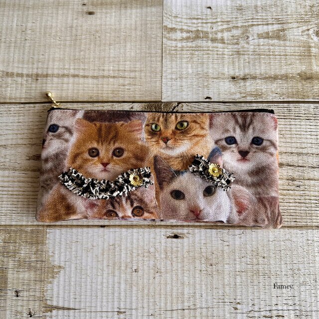 検索ワード→猫、猫、猫の日、ペンケース、ペンポーチ、小物入れ、メガネケース、ポーチ、お花、大人可愛い、大人かわいい、かわいい、カワイイ、キュート、プレゼント、ハンドメイド、手作り、ギフト、お出かけ、旅行、リボン、フリンジリボン、ステーショナリー、文具