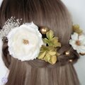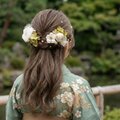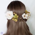成人式 髪飾り 白×抹茶|卒業式 袴 和装ヘア No.MC60 振袖 着物 和装 花嫁 結婚式 前撮り 入学式 和モダン