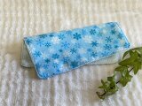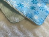 水色の地に無数の雪の結晶が散りばめられた柄のダブルガーゼとふんわりした肌触りのタオル地を合わせて、ハンカチを作りました。