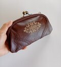 【受注制作】手刺繍入りイタリアンレザーのガマグチ長財布(薄型ガマグチLサイズ)