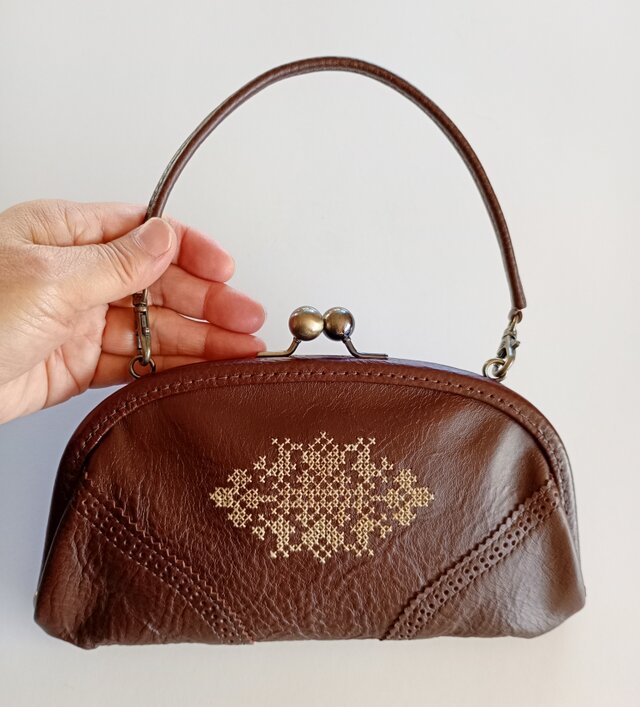 永くお使いいただけるよう「穴明き口金」は革で丁寧に巻き付け