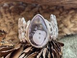 アメシストの中に「雪だるま」のような白い結晶を内包した何とも愛らしい石、「クリストバライトinアメシスト」。