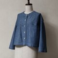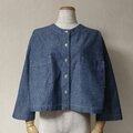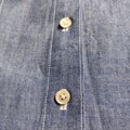 タテに色糸、ヨコに晒白糸で織られたシャンブレー生地です。薄地で軽く、丈夫で扱いやすく、通気性にも優れています。光沢感がありカジュアルでも上品にまとめることができます。