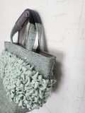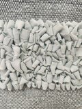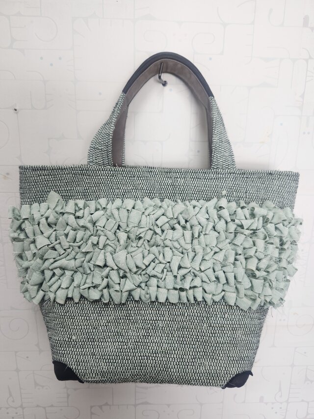 裂き布を出しながら織り上げ、フリルのように仕上げました。