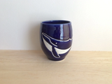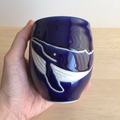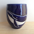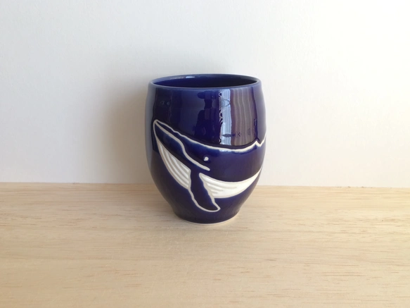 クジラの部分は白とルリ色の釉薬で掛け分け、輪郭部分は無釉です。