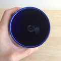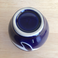 全体に艶のあるルリ色の釉薬を施しています。ずっしり重量感があります。