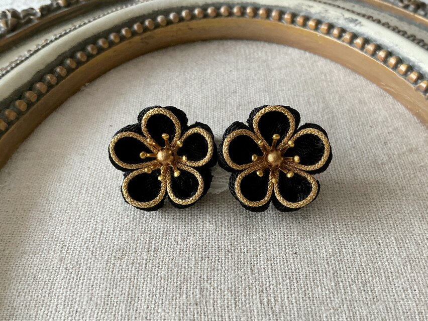 花芯は座金と金色のパールビーズで華やかに仕上げました。