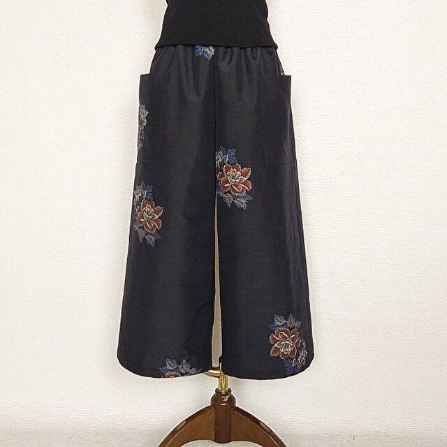 紬のリメイクガウチョパンツです。