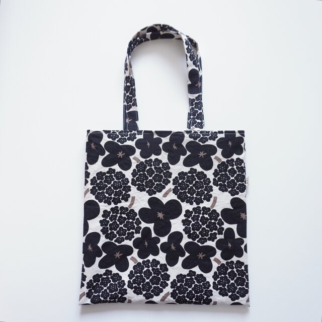 フラットトートバッグ 肩かけ 花模様モノトーン