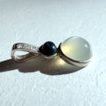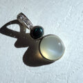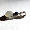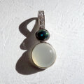 オペークタイプのチョコレートオパールと、まんまるムーンストーンのキャッツアイを合わせたバチカン一体型ペンダントです。