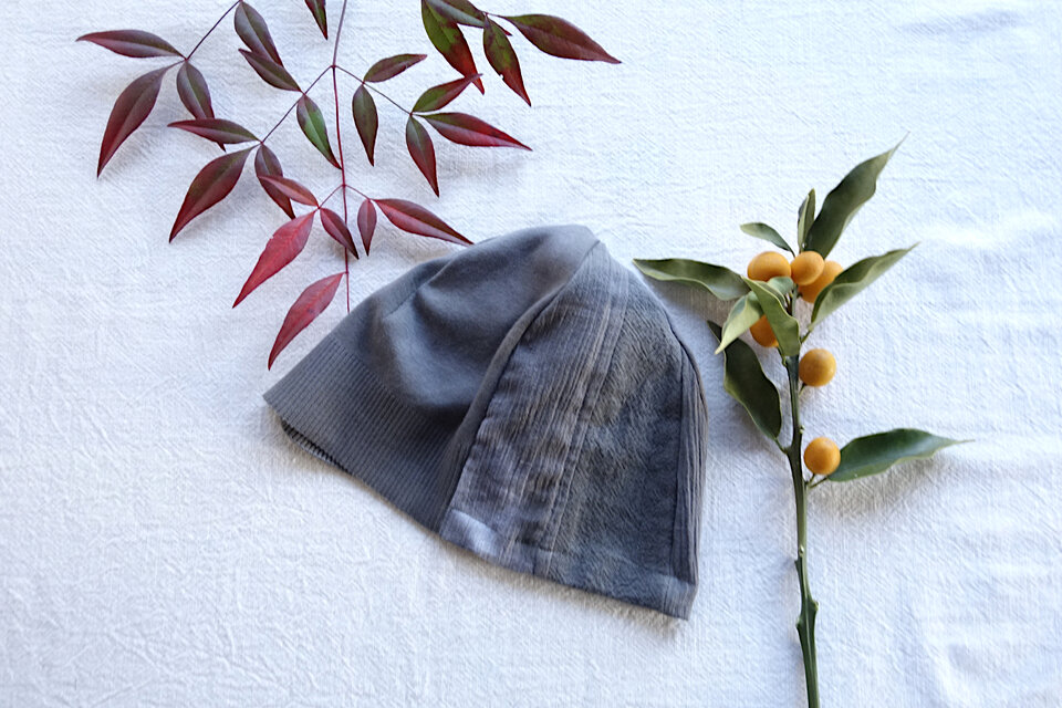草木染の綿の薄地のニット帽です。
